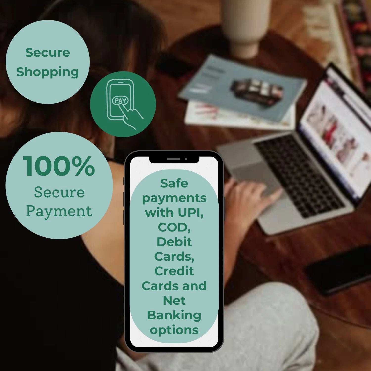Safe payments with UPI, COD, Credit Cards, Debit Cards and Net Banking options.