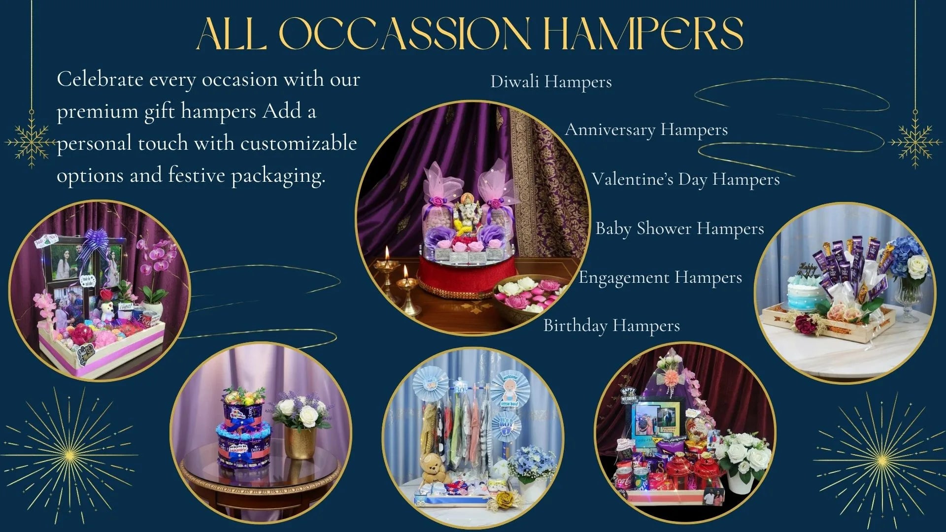Celebrate every occasion with our premium gift hampers Ideal for festivals, birthdays, anniversaries, weddings, corporate gifting, engagements, and baby showers, these beautifully packed hampers make every milestone unforgettable.