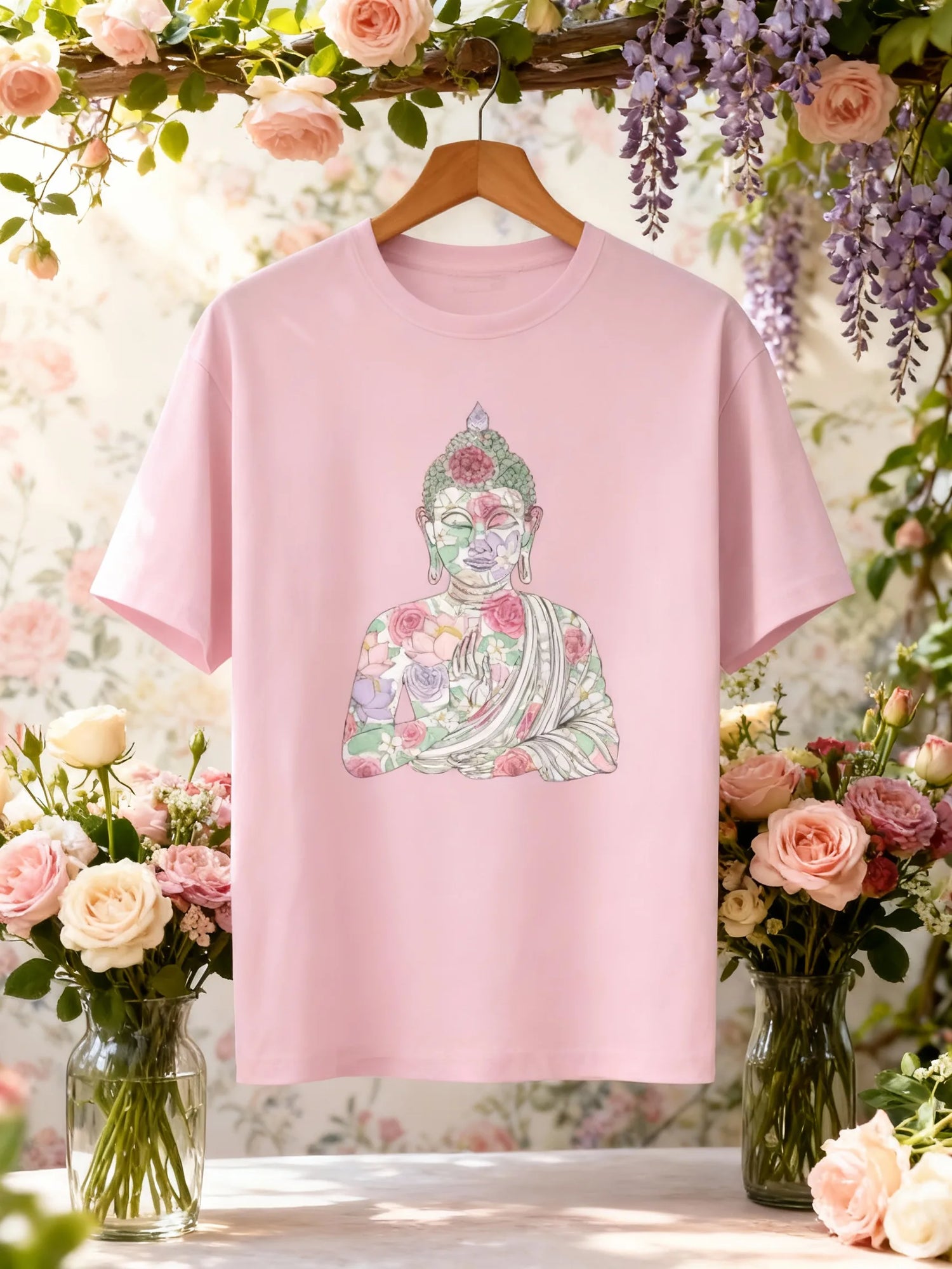 Trendy Women’s Buddha & Peace Graphic T-Shirt – Stylish Casual Wear Classic Crew T-Shirt
