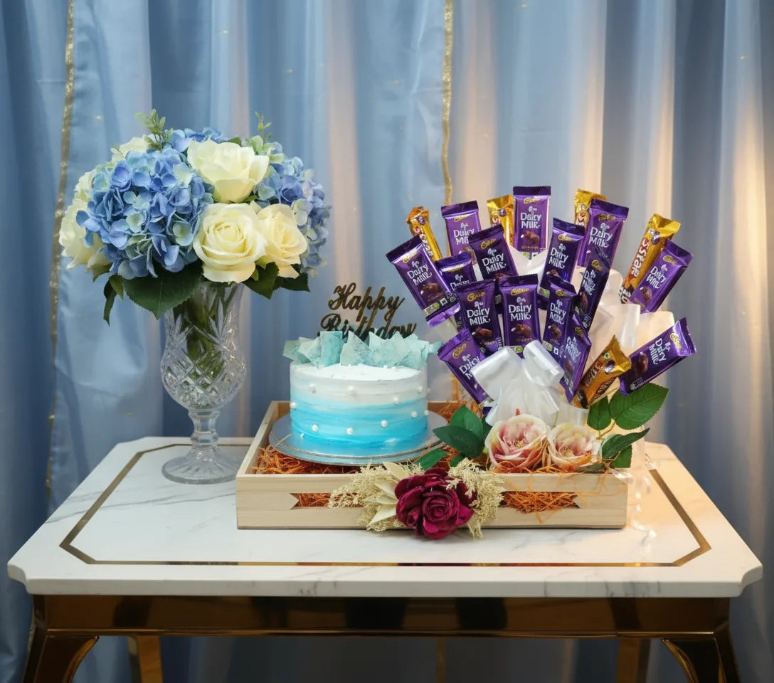 Elegant Birthday Hamper with Cake & Chocolate Bouquet