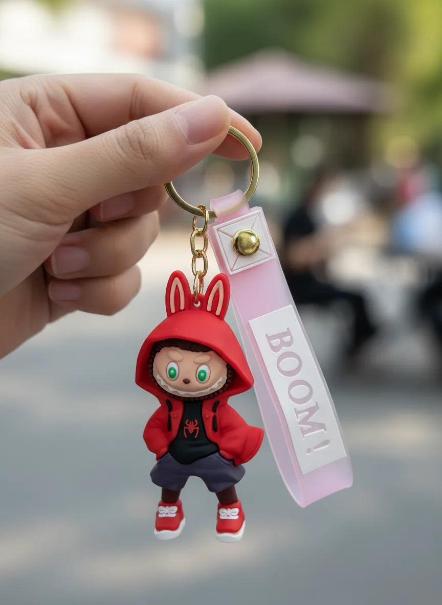 Labubu Cartoon Keychain Red Color – Funky Rubber Key Ring for Bags, Bikes & Gifts