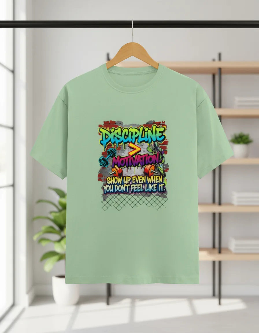 Men’s “Built on Discipline, Not Motivation” Gym & Casual Graphic T-Shirt Classic Crew T-Shirt