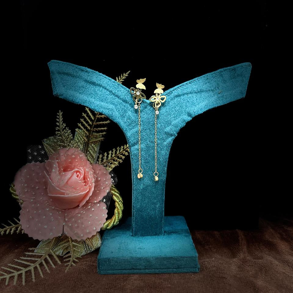 Delicate, whimsical, and statement-making — these butterfly dangle earrings in a luxe gold finish are a perfect blend of modern charm and playful elegance.