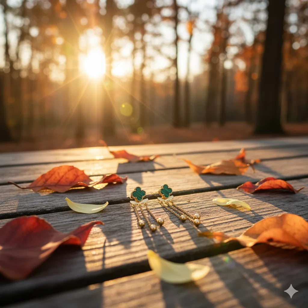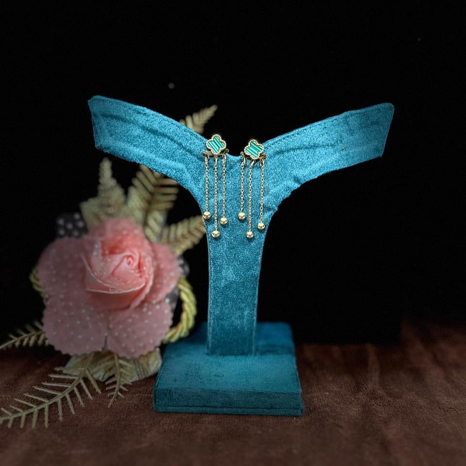 The design features an elegant green enamel clover motif at the top, paired with three fine gold chains, each ending in a smooth bead drop that sways beautifully with movement. Lightweight, skin-friendly, and stylish — these earrings are perfect for elevating both ethnic and modern looks.