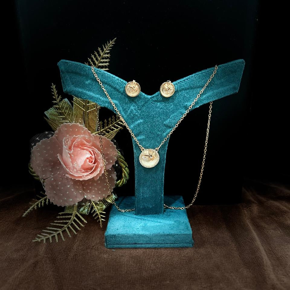 The round pendant is delicately adorned with a butterfly motif and sparkling crystal accents, giving it a graceful and feminine appeal. Paired with matching round earrings, this set is ideal for those who love jewelry that’s subtle yet eye-catching.