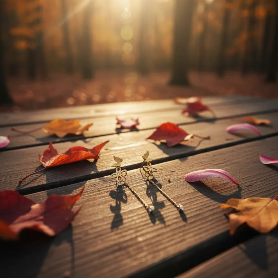 Gold Floral Long Chain Earrings for Women | Anti-Tarnish Stainless Steel Jewelry