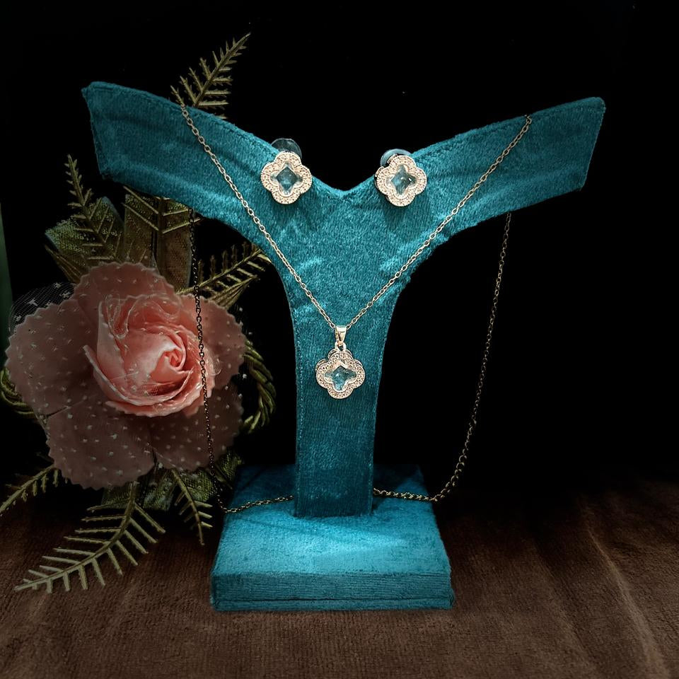 The set includes a delicately designed open clover pendant paired with matching stud earrings, featuring textured detailing for a soft sparkle. Lightweight, modern, and versatile — perfect for elevating both casual and formal looks.