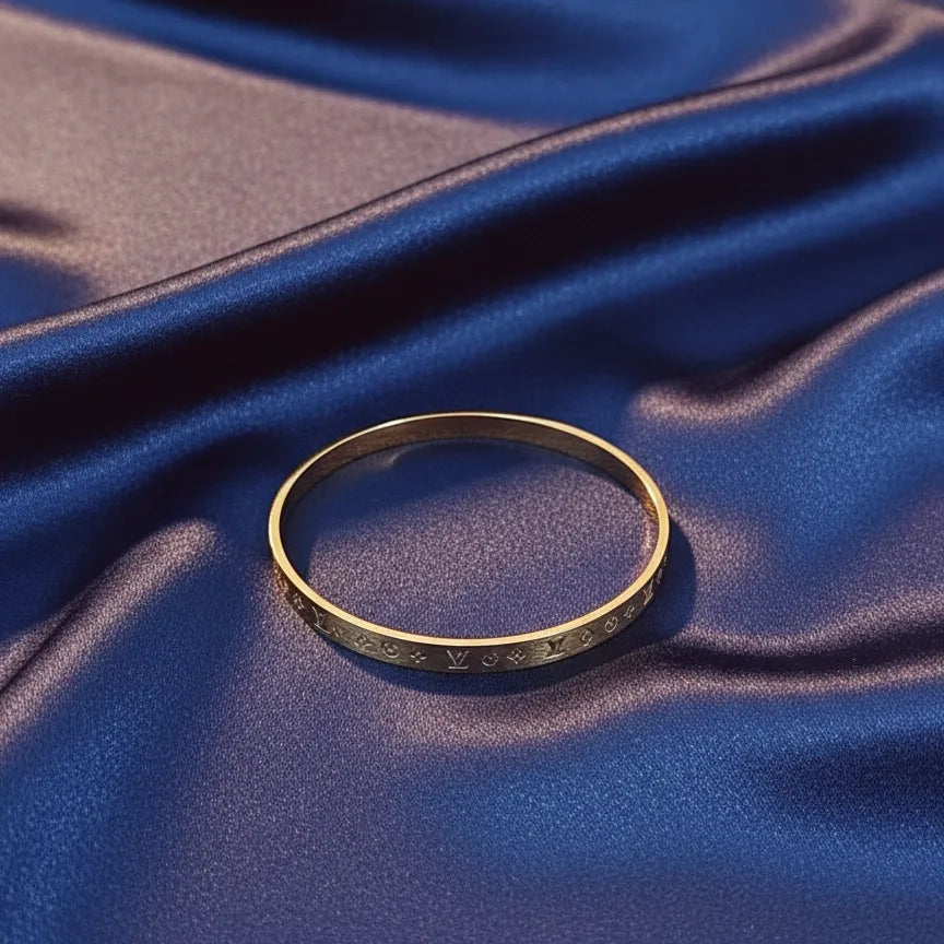 The bracelet features a slim design with delicate engraved patterns all around, adding a subtle decorative charm. Lightweight, comfortable, and skin-friendly, it’s ideal for pairing with both casual and formal outfits.