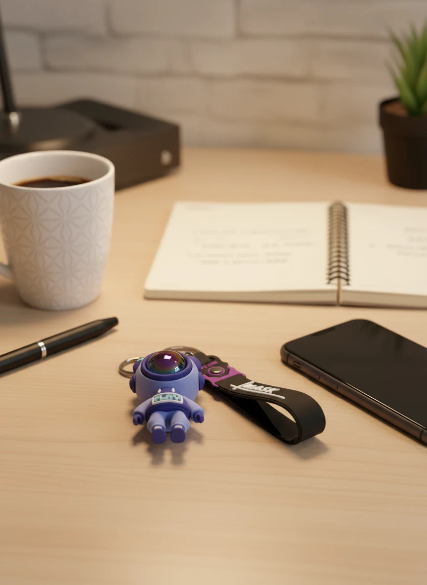 Upgrade your everyday style with this astronaut bear keychain, designed with a futuristic 3D look and a stylish “Mask” strap. Crafted from premium-quality soft rubber with a glossy space visor effect, it’s the perfect mix of quirky design and durable build.