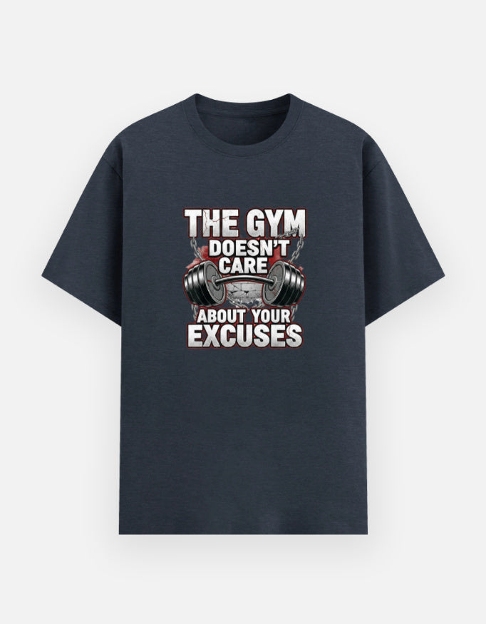 Featuring the bold statement “The Gym Doesn’t Care About Your Excuses” with a striking graphic print, this workout t-shirt is built for athletes, bodybuilders, and fitness enthusiasts who thrive on discipline and strength. With its athletic yet relaxed fit, it ensures unrestricted movement—perfect for lifting, running, or chilling in style.
