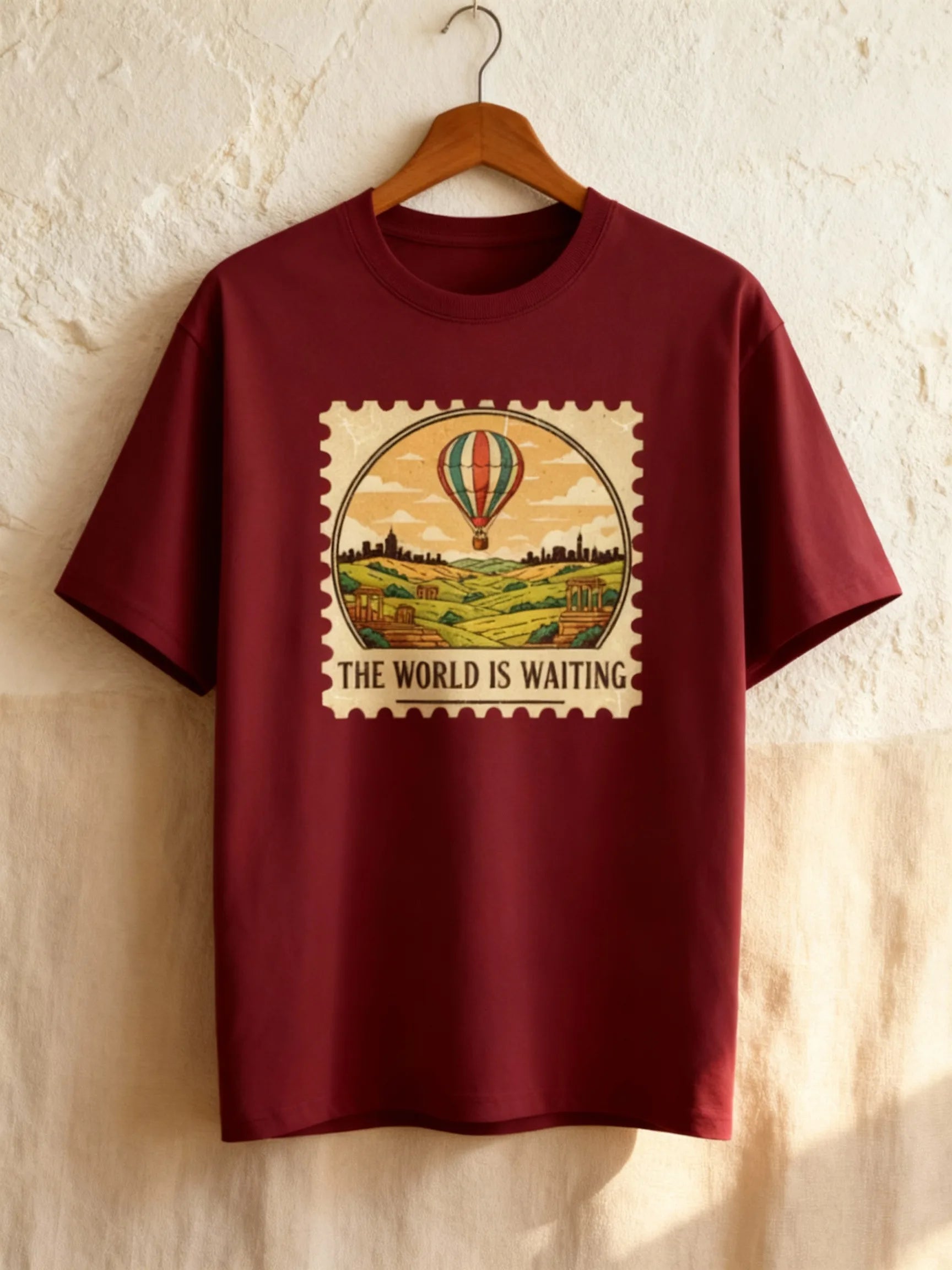The vintage-inspired hot air balloon print captures the spirit of wanderlust and reminds you that there’s a whole world waiting to be discovered. Stylish and versatile, this travel tee pairs effortlessly with jeans, joggers, or shorts. Whether you're on the road, planning your next adventure, or just embracing a travel-inspired lifestyle, this t-shirt keeps you looking fashionable and feeling comfortable.