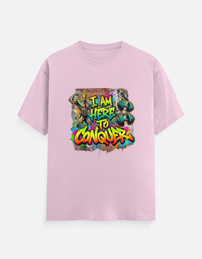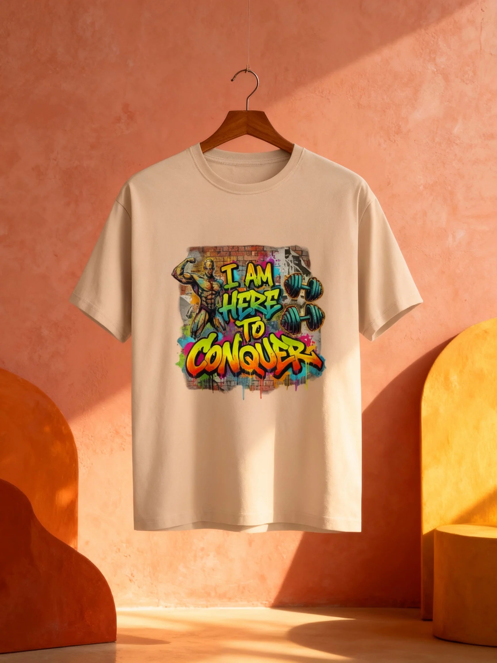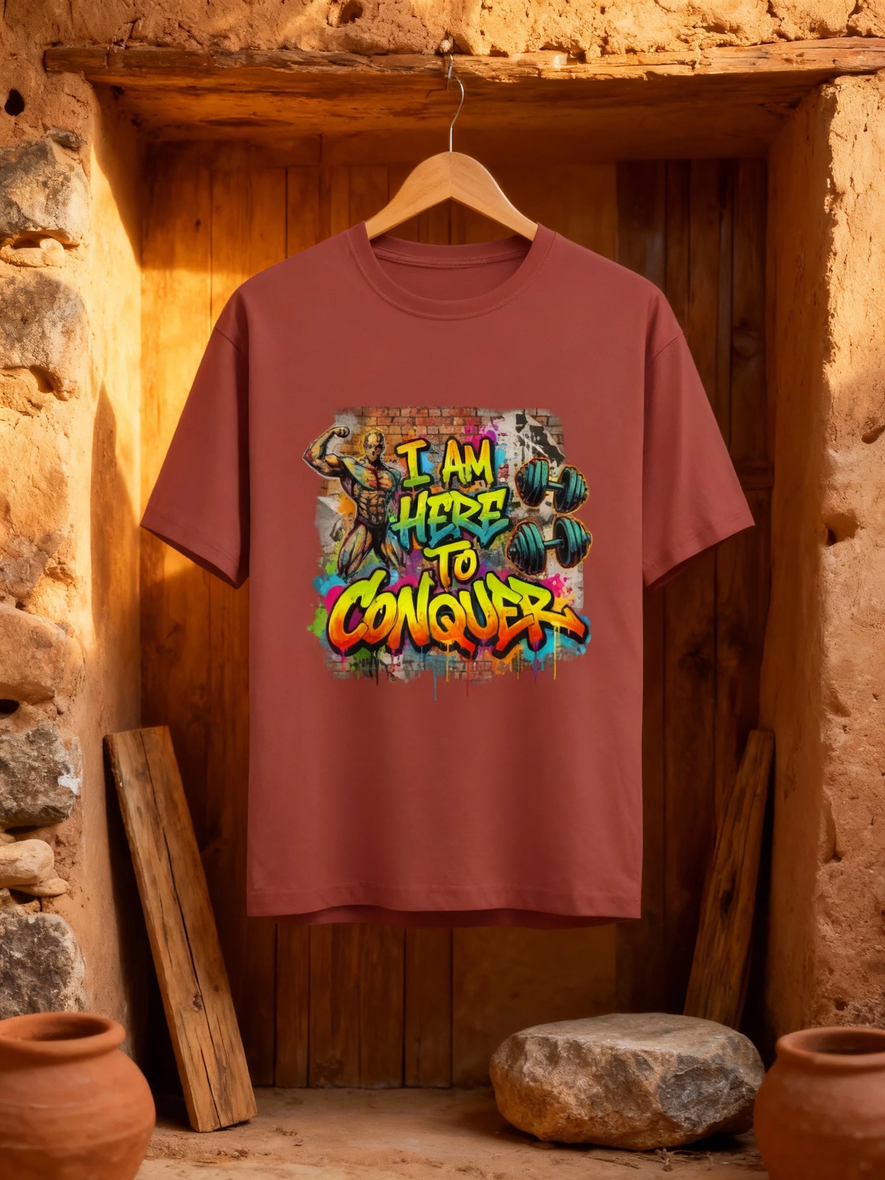 “I Am Here to Conquer” Men’s Gym & Streetwear Graphic T-Shirt Classic Crew T-Shirt