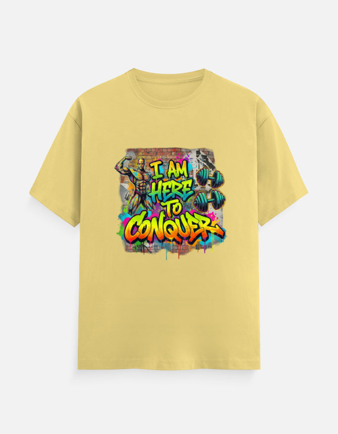 Turn heads and stay motivated with the “I Am Here to Conquer” Men’s T-Shirt, designed for those who take their fitness and style seriously. Made with 100% premium cotton (180 GSM), this tee is lightweight, breathable, and super comfortable, making it ideal for intense workout sessions or casual streetwear. The bold graffiti-style print and powerful message create an energetic vibe that reflects your determination both inside and outside the gym.