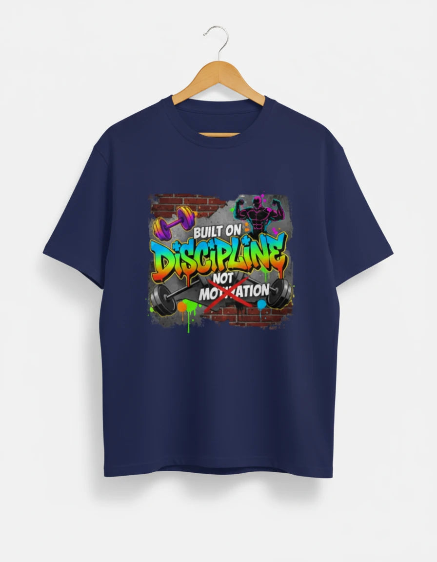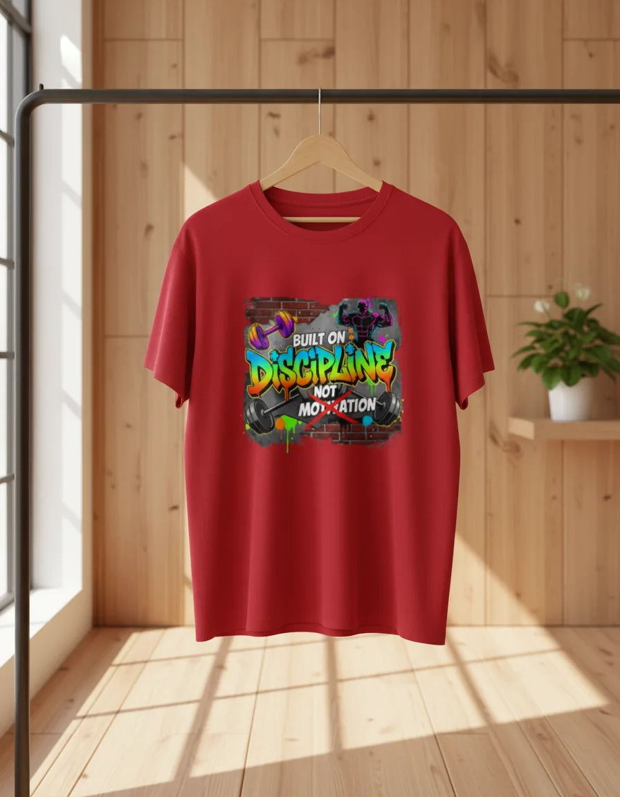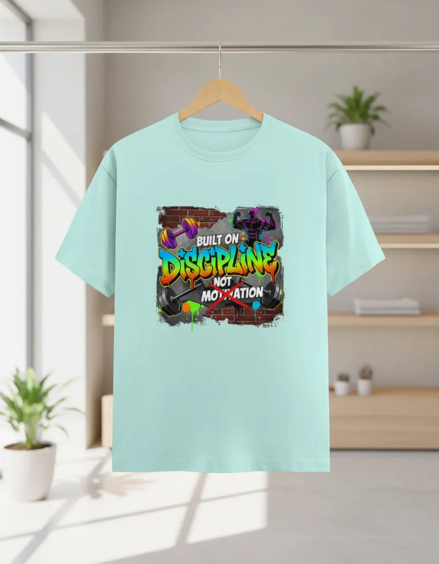 Men’s “Built on Discipline, Not Motivation” Gym & Casual Graphic T-Shirt Classic Crew T-Shirt
