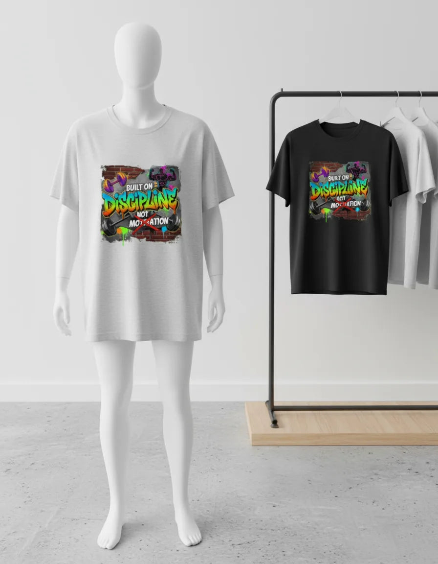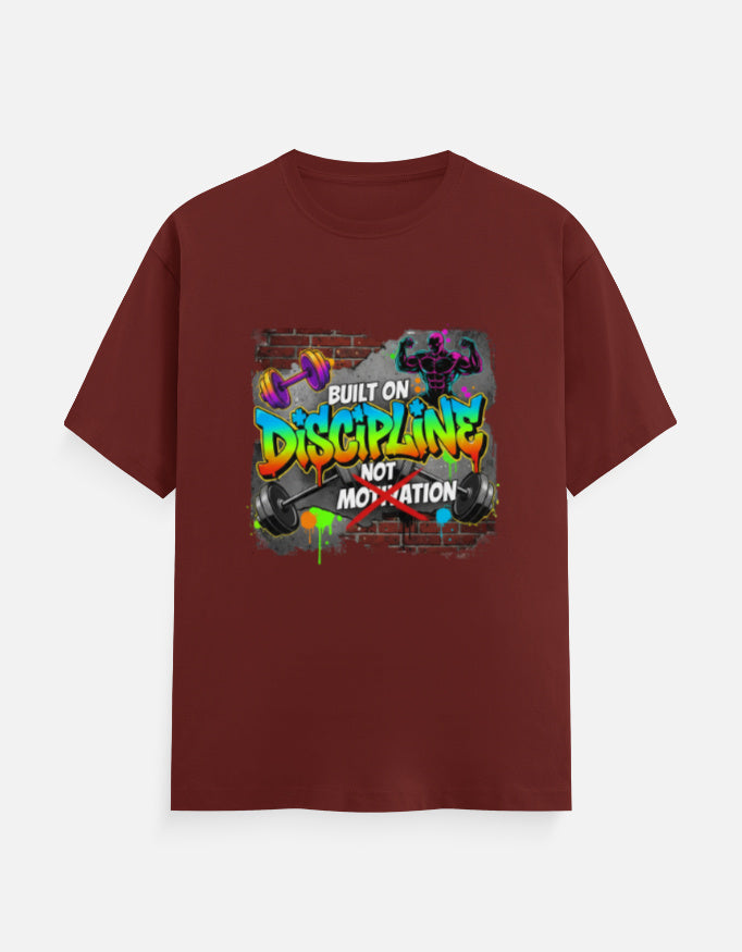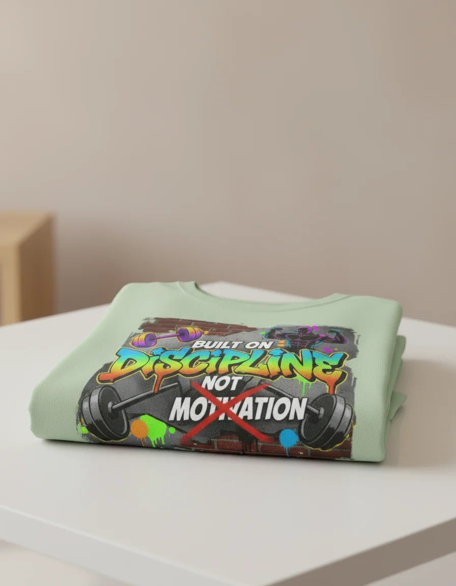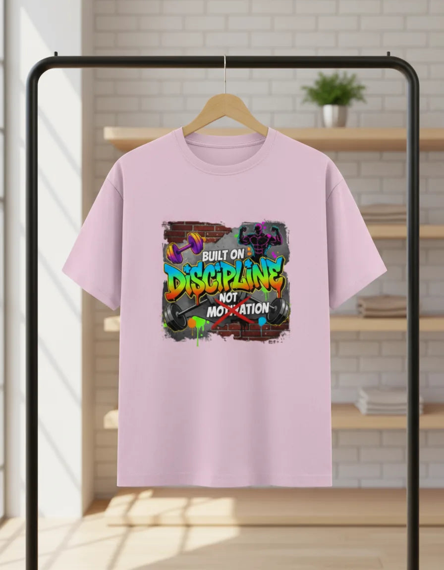 Men’s “Built on Discipline, Not Motivation” Gym & Casual Graphic T-Shirt Classic Crew T-Shirt
