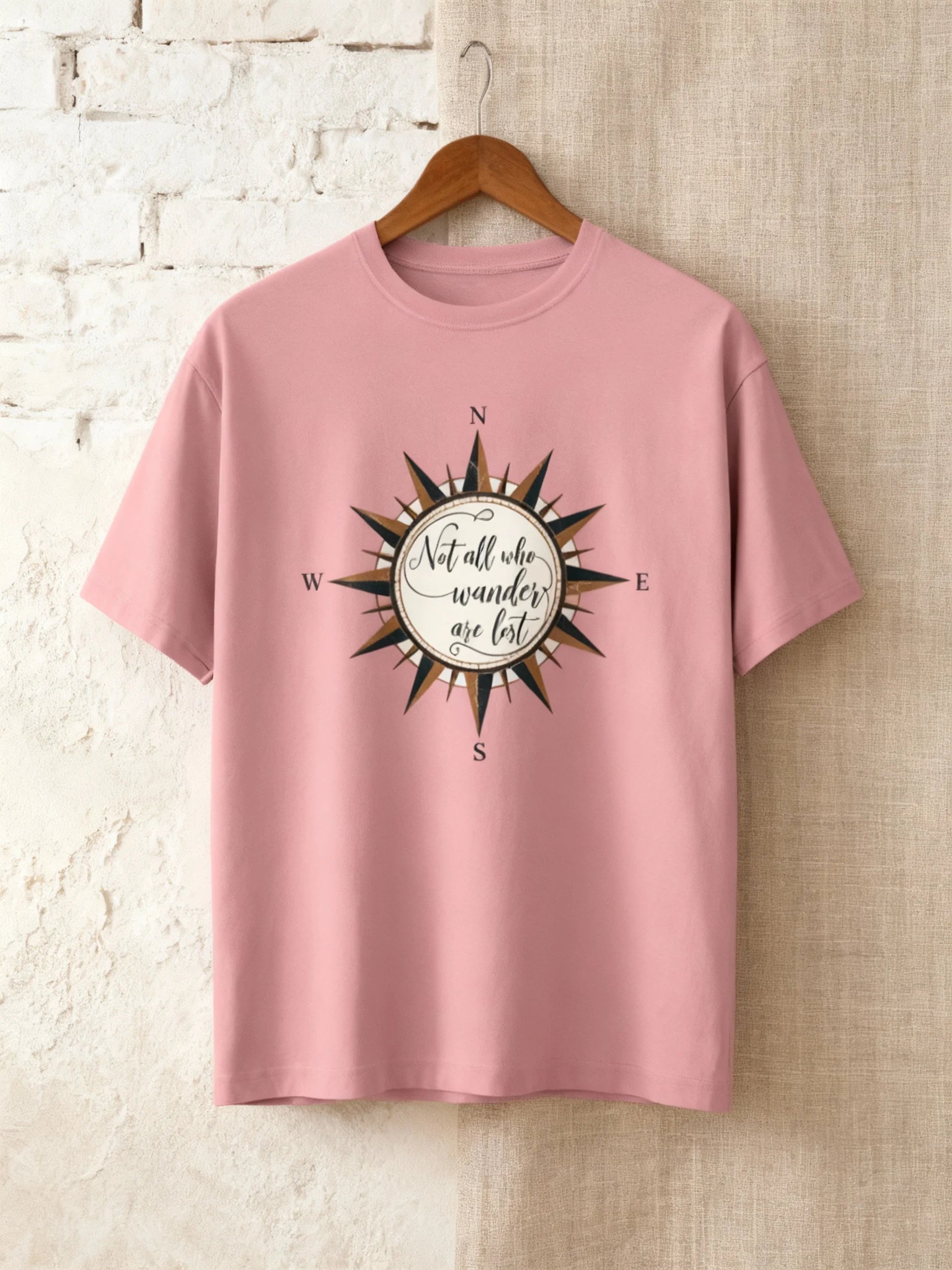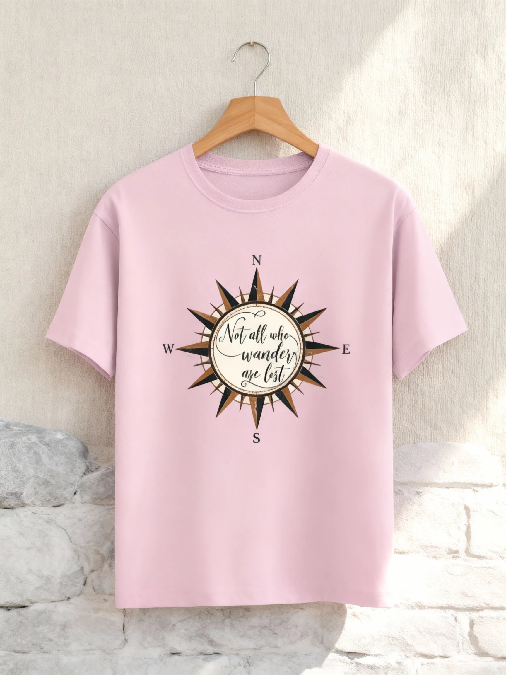 “Not All Who Wander Are Lost” Unisex Travel T-Shirt – Compass Adventure Tee Unisex Classic Crew T-Shirt